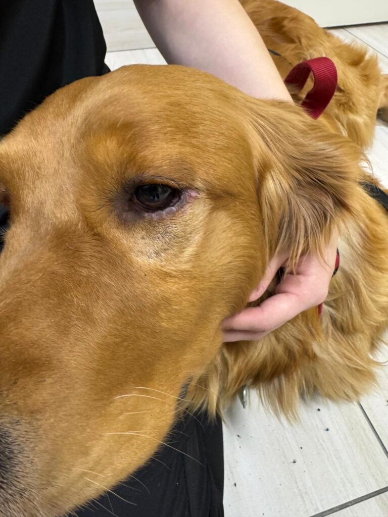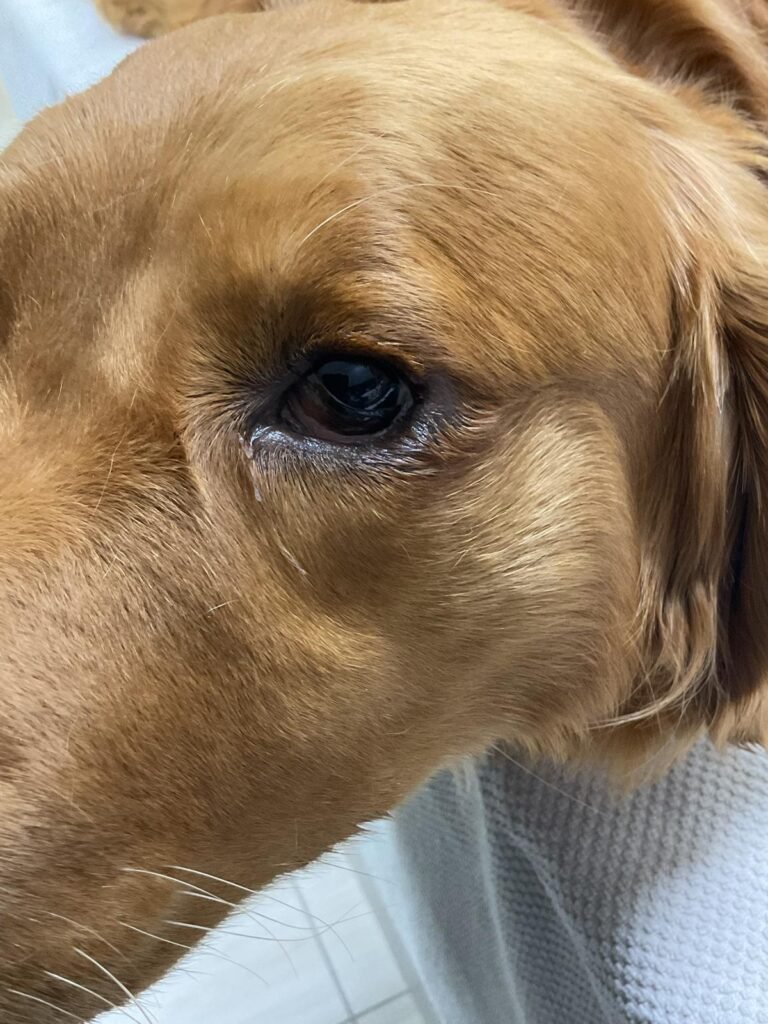 Meet Nina, a sweet dog who came to Yorkson Creek Veterinary Hospital with a challenging condition — bilateral entropion, a painful disorder where the eyelids roll inward, causing the eyelashes to constantly rub against the eyes. This led to continuous eye discharge, irritation, and discomfort for poor Nina.